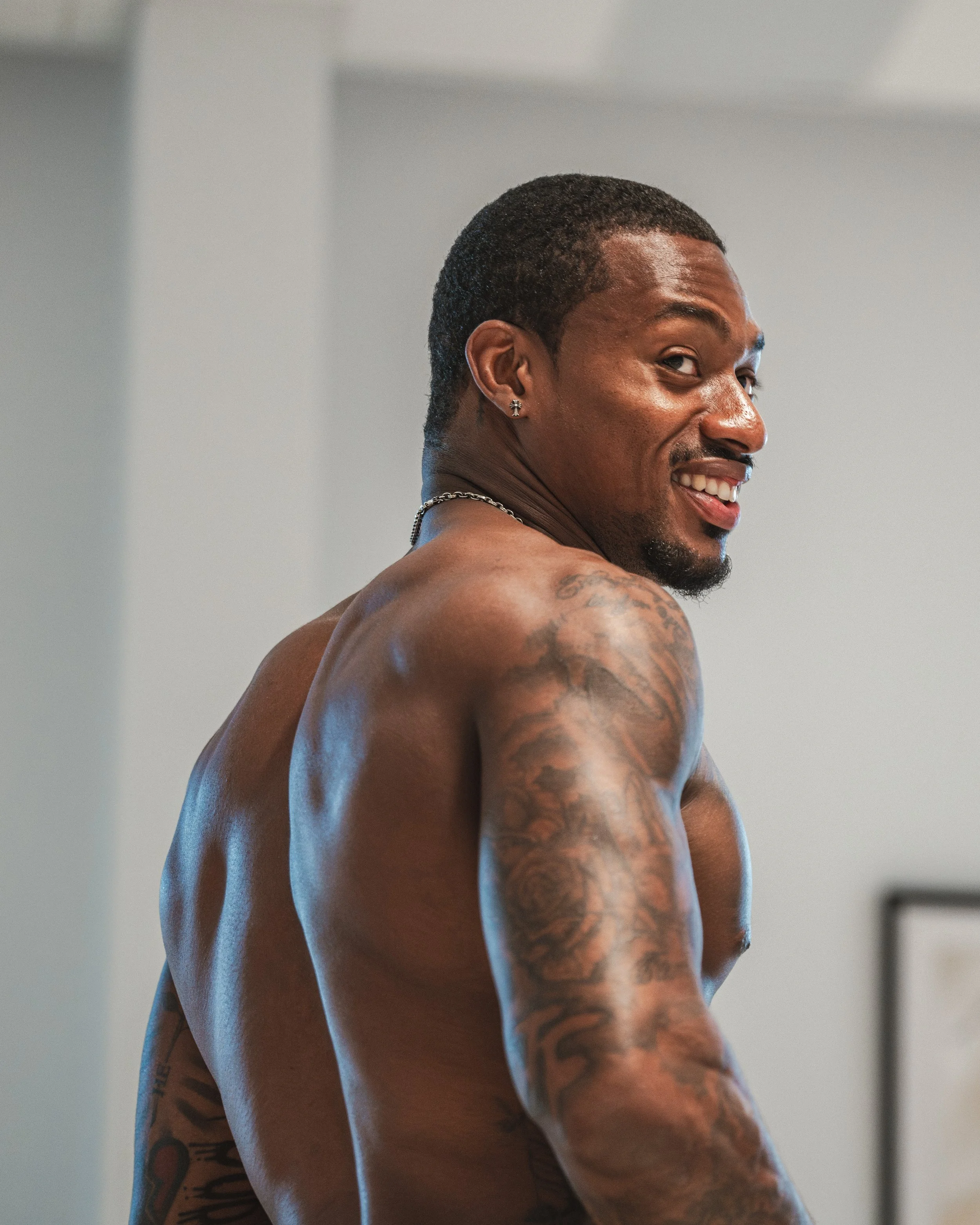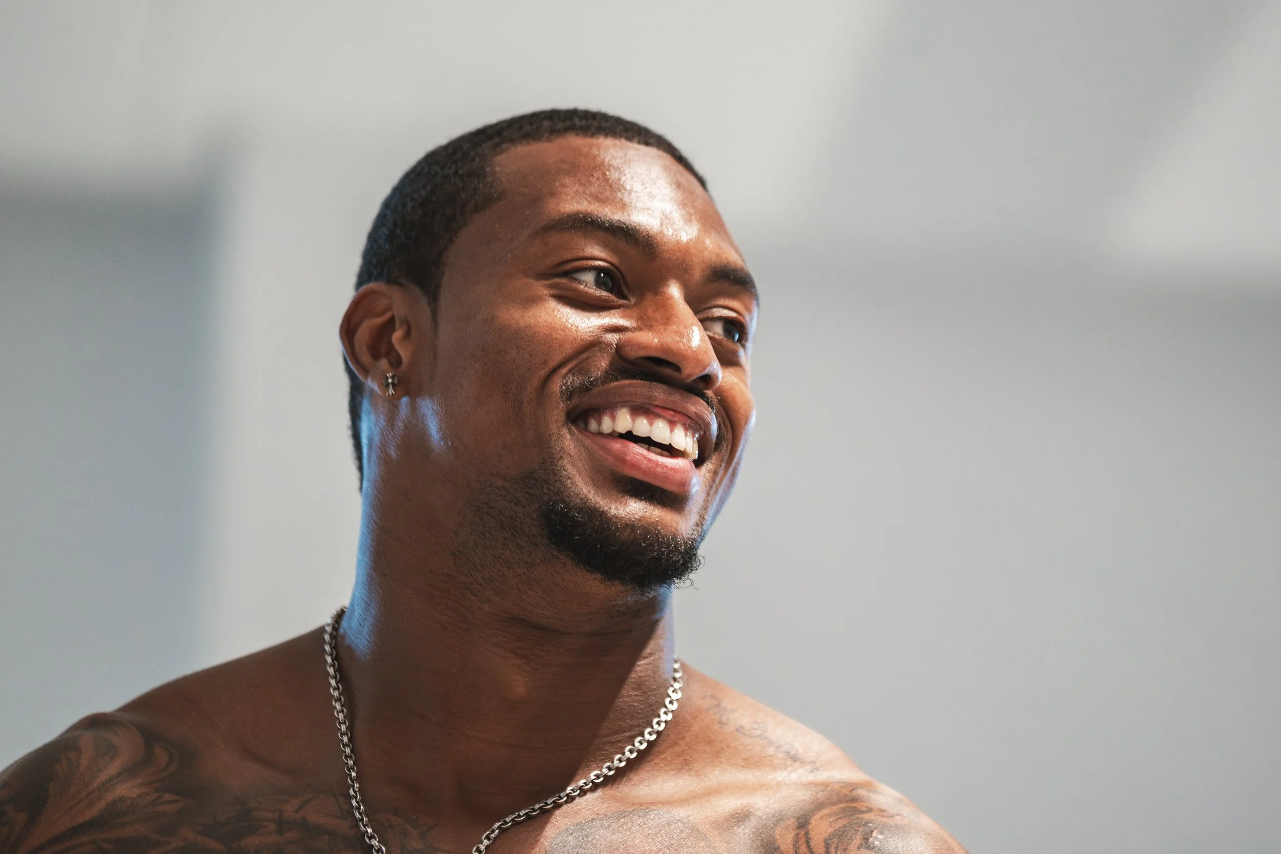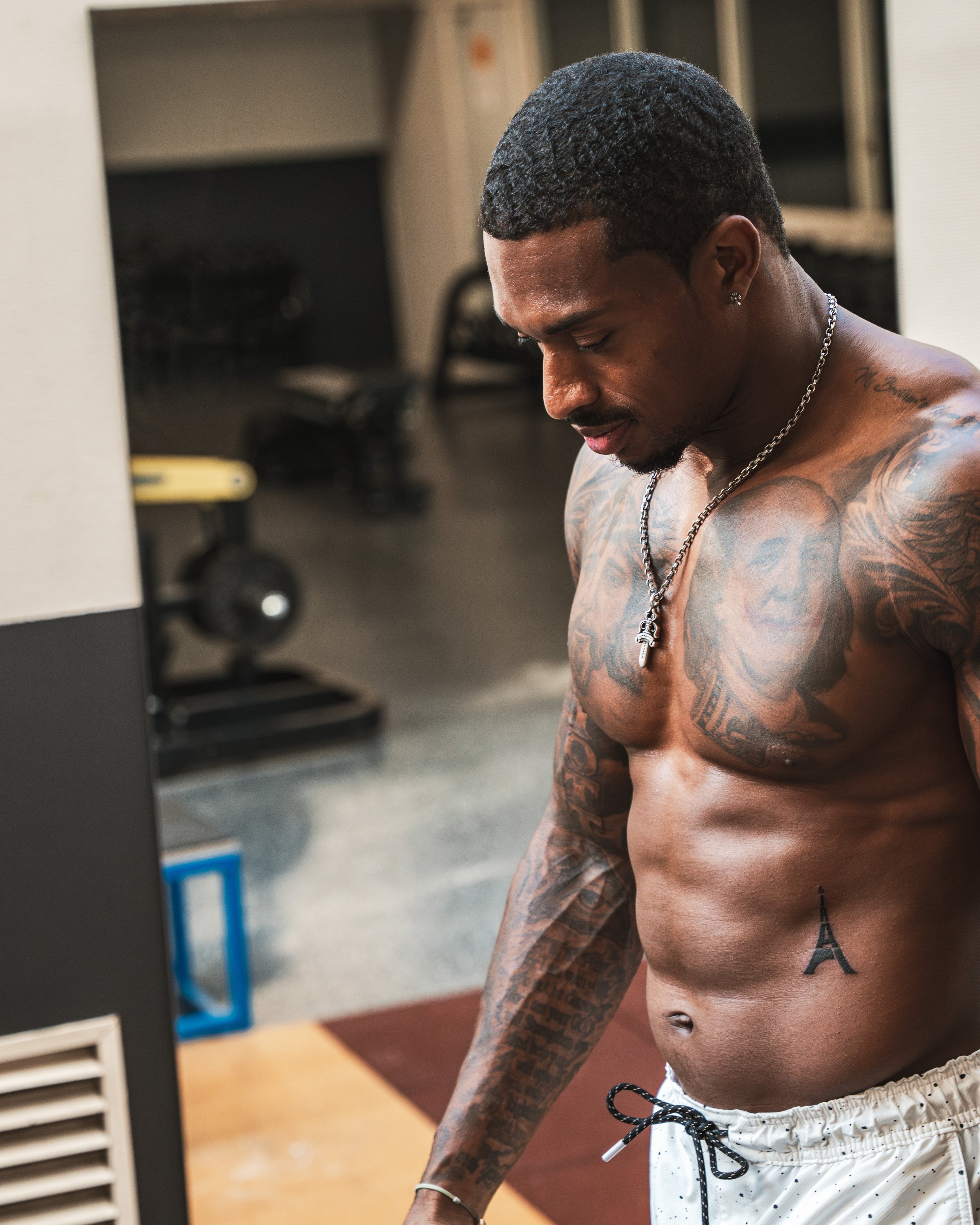 Documented Deshon Elliot’s off-season training sessions with fellow NFL player Charles Omenihu during Paris Fashion Week.