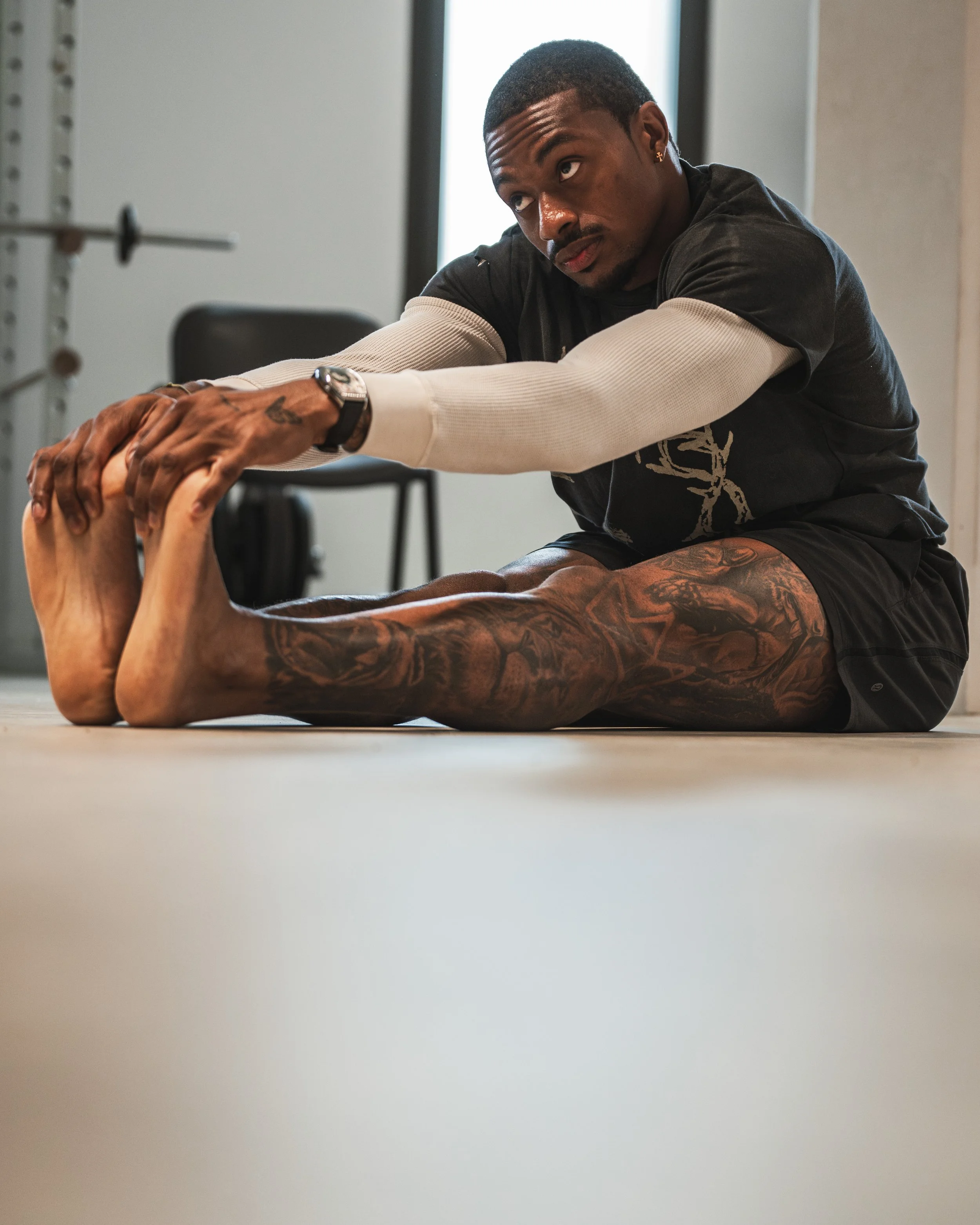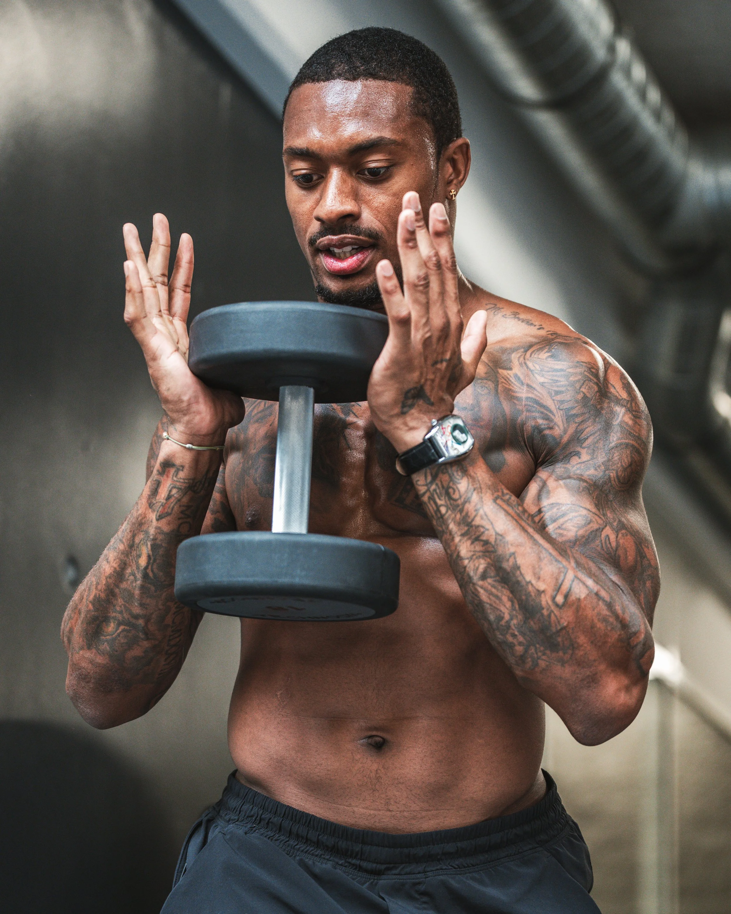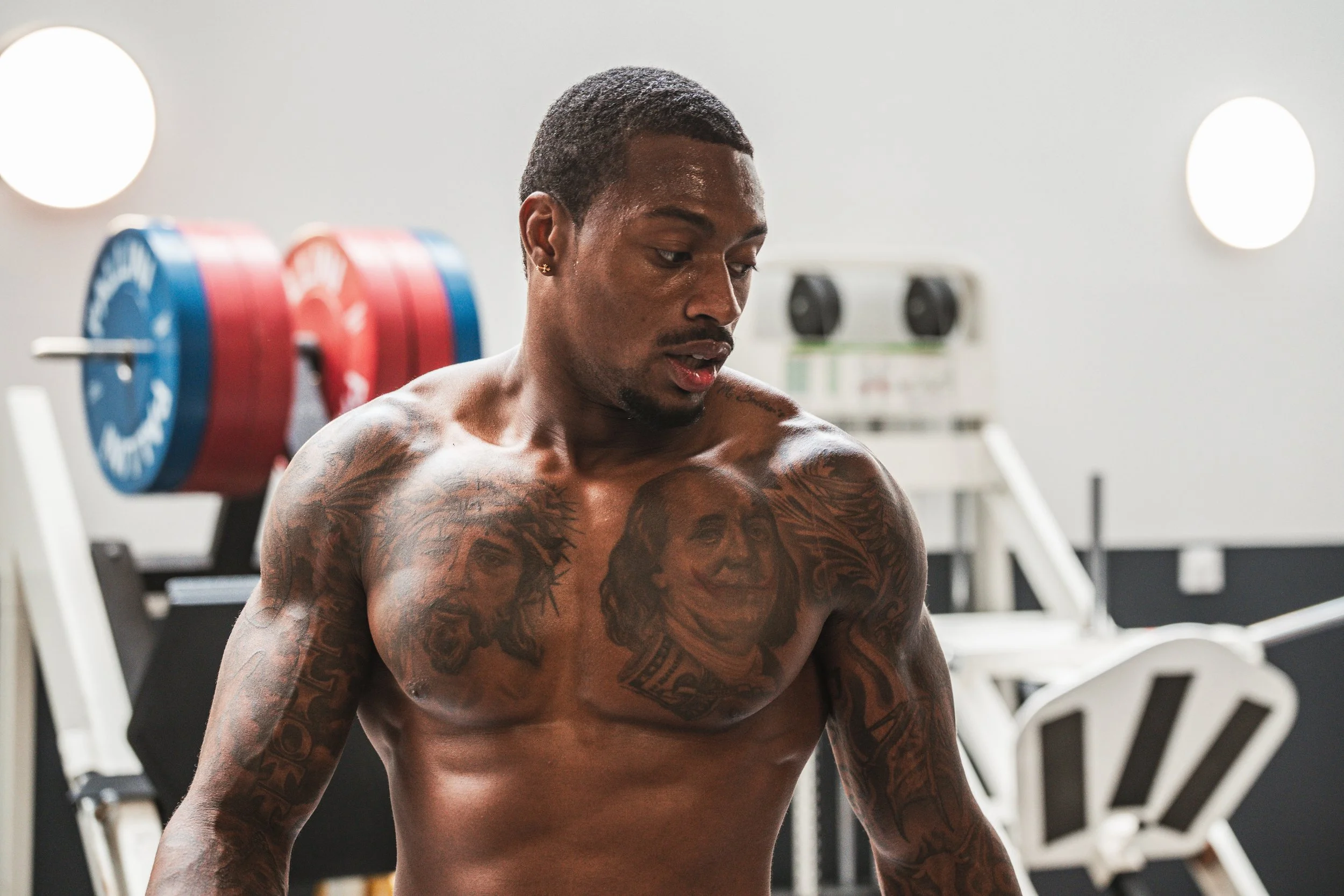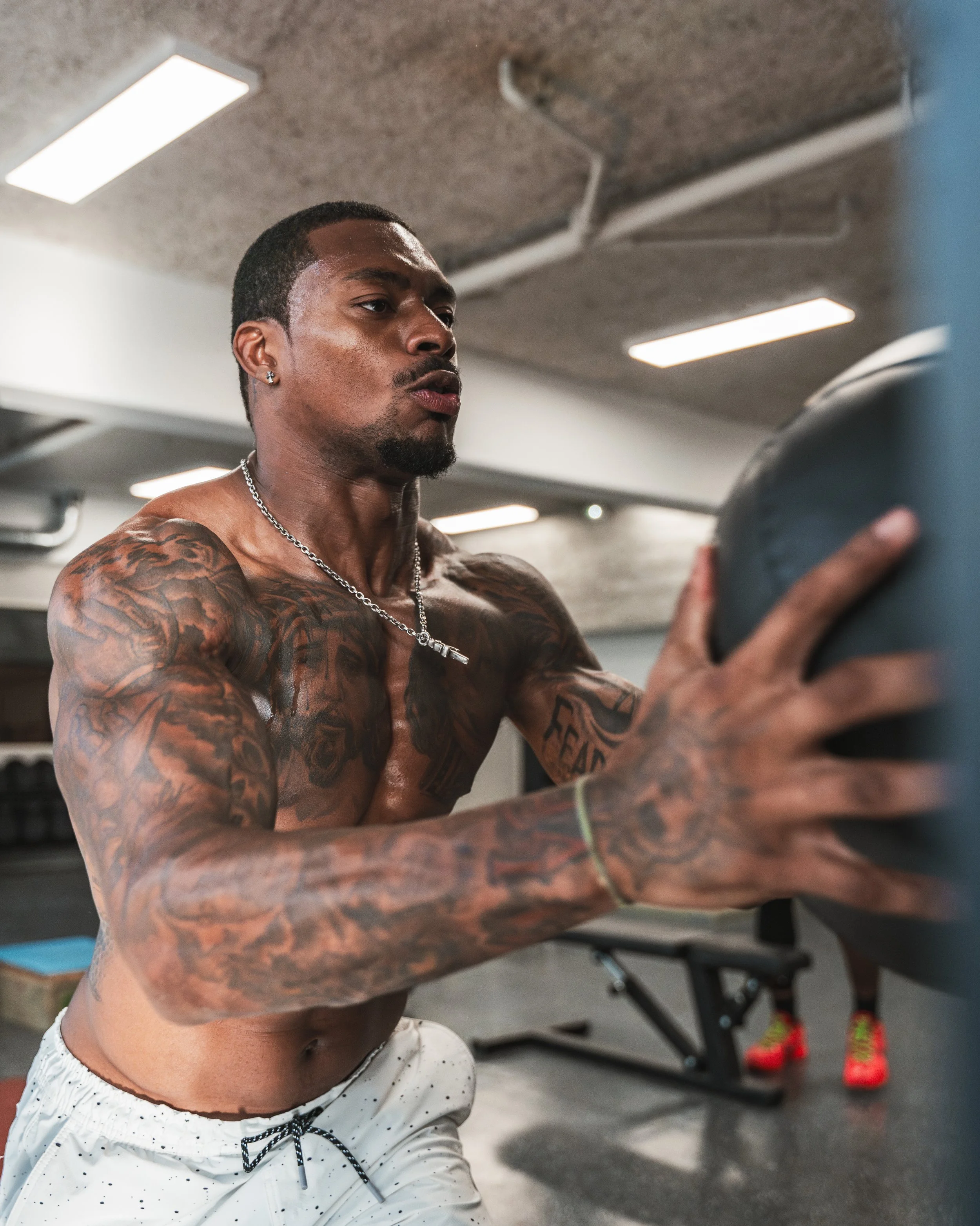 Documented Deshon Elliot’s off-season training sessions with fellow NFL player Charles Omenihu during Paris Fashion Week.