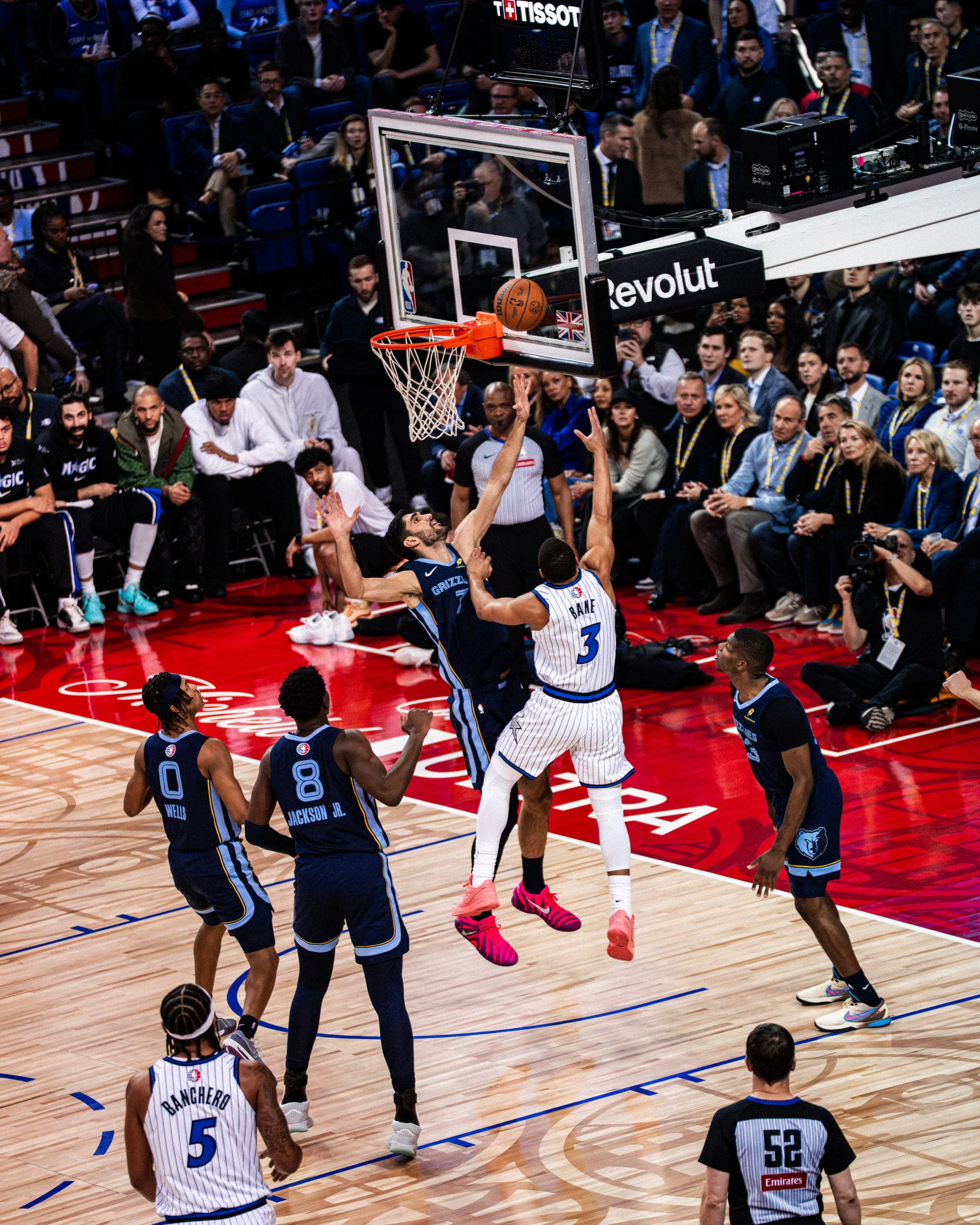 Coverage included partner activations at NBA House (Magazine London) for brands such as Emirates, Revolut, 2K, Foot Locker and TISSOT, alongside live game action, partner arena branding and in-venue activations on game day.